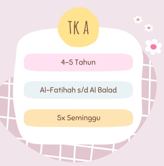 Pembelajaran tahfidz setiap hari dengan durasi 60 menit menggunakan metode ummi.